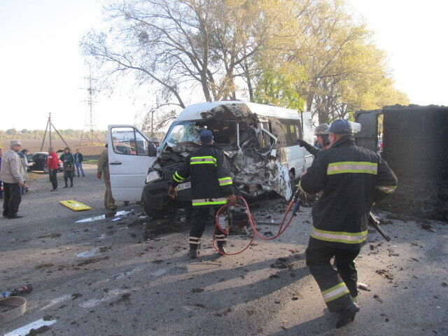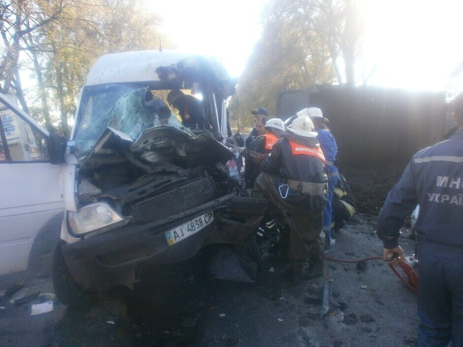 В Киевской области маршрутка столкнулась с грузовиком, один погибший. Фоторепортаж