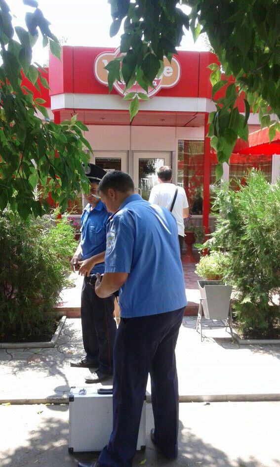 Около 11.00 в милицию поступило сообщение от работников кафе о том, что в их посетителя, сидевшего за столиком вместе со спутницей, из кустов было совершено два выстрела. Мужчина погиб на месте.