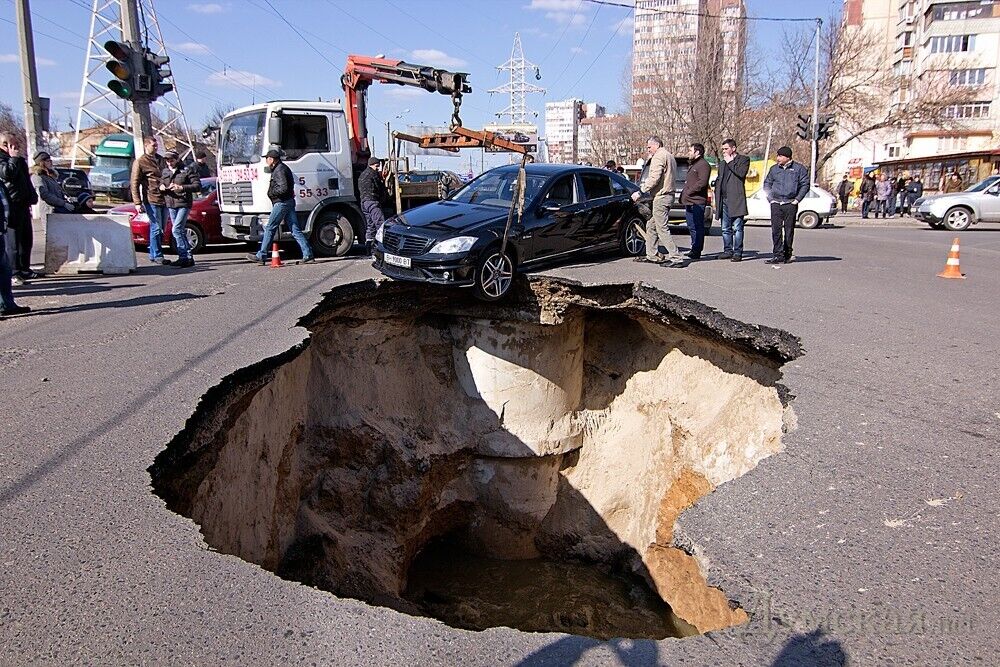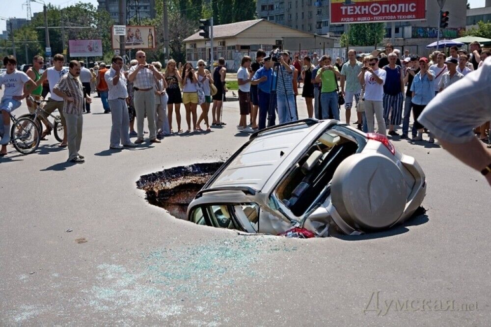 Провал на этом перекрестке образовался не впервые. "Думская" сообщала, что в августе 2008 года в яму упал внедорожник Toyota RAV4.