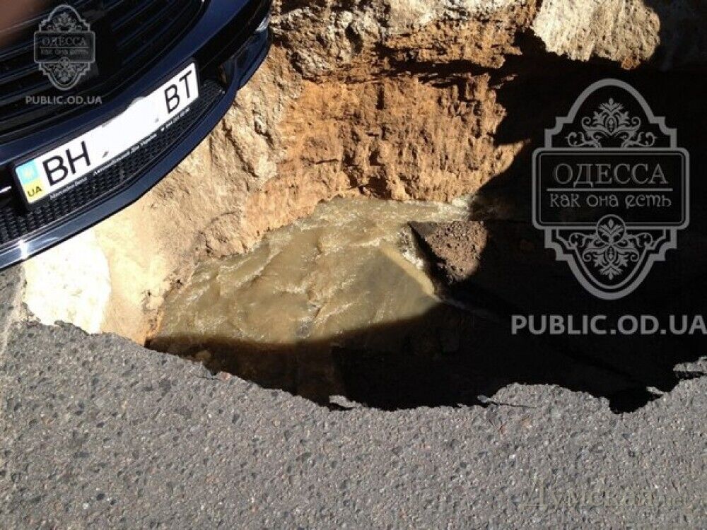 В Одессе после потопа достали маршрутку из-под земли. Этот перекресток уже "съел" не одну машину. Фото, видео
