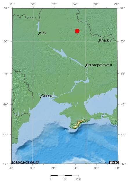 Утром 3 февраля возле села Васильевка Сумской области произошло землетрясение магнитудой 4,6.