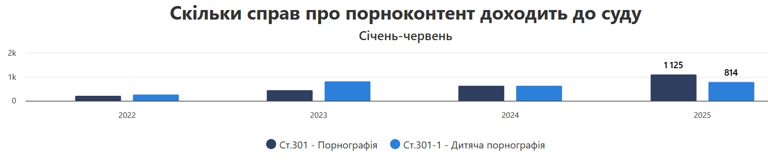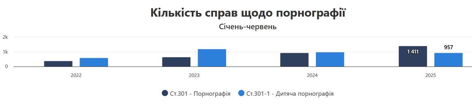 "Если дел по детской порнографии [в 2025 году] уменьшилось на 4%, то дел по изготовлению, сбыту и распространению порно увеличилось в 1,5 раза", – отметили в Opendatabot.