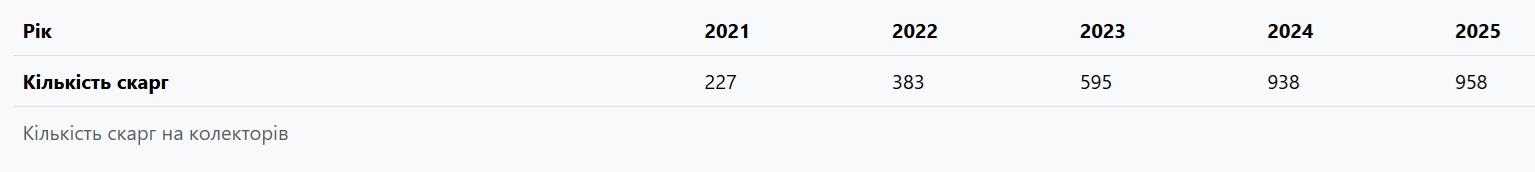 "Более 3,1 тыс. жалоб о деятельности коллекторских компаний получил Национальный банк Украины за последние четыре года. [...] 958 жалоб на коллекторов уже зафиксировали в этом году. Это уже больше, чем за весь прошлый год. В среднем Нацбанк получает 104 обращения в месяц – на треть больше, чем в прошлом году, и вдвое больше, чем в 2023-м", – говорится в сообщении.