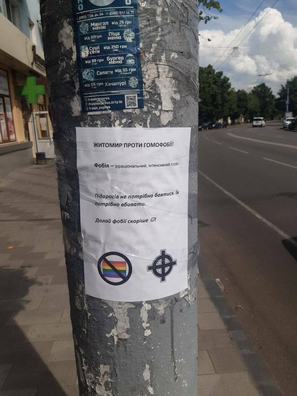 В Житомире расклеили гомофобные листовки с призывом "убивать пид...расов", омбудсмен обратилась в полицию