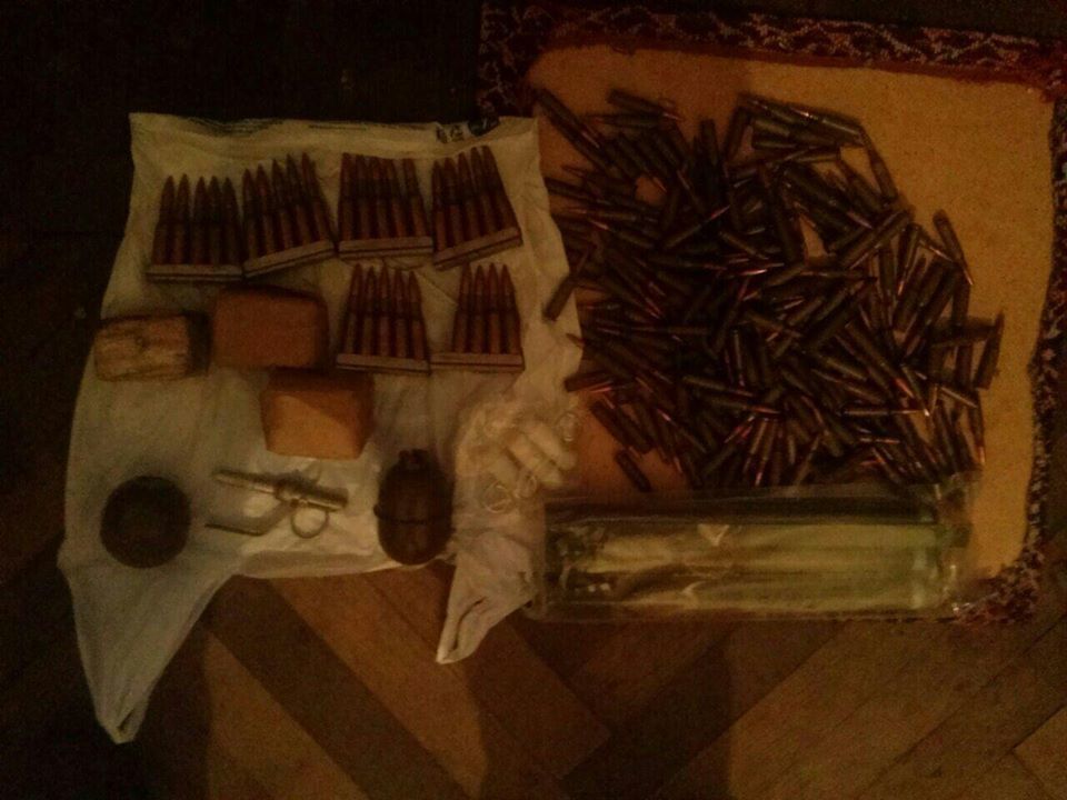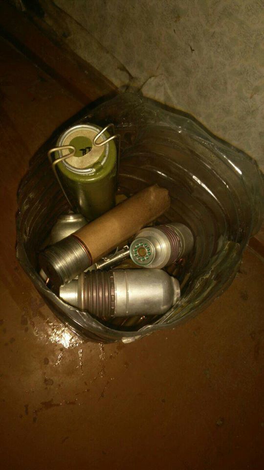 В СБУ отметили, что в ходе обыска из тайников были изъяты два противотанковых гранатомета РПГ-26И, минометная мина, восемь гранатометных выстрелов, 10 гранат, один килограмм пластида и более тысячи патронов различного калибра. На данный момент продолжаются соответствующие процессуальные действия.