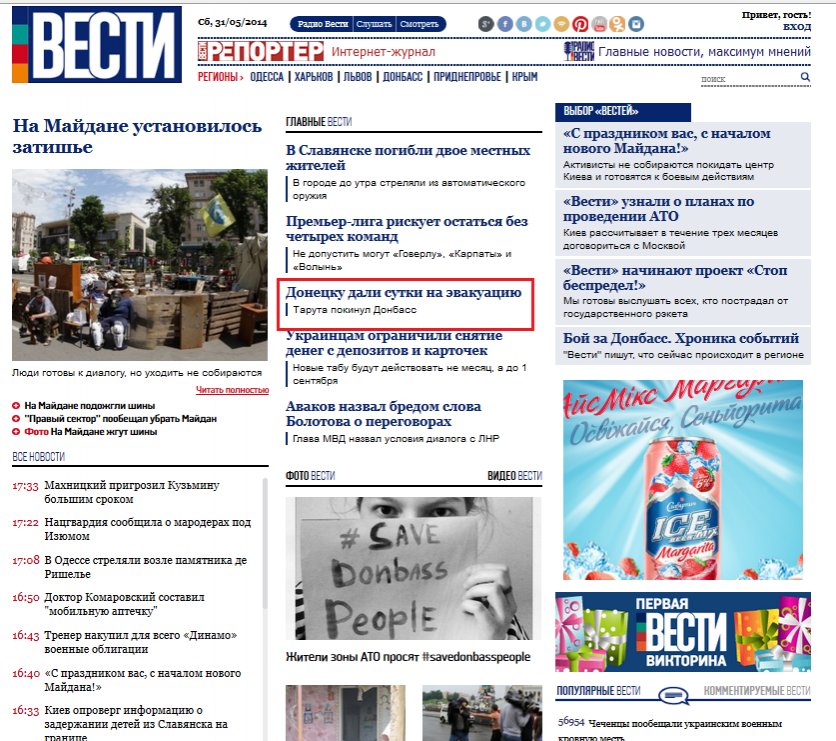 31 мая днем издание опубликовало информацию о том, что 1 июня украинские силовики не будут предпринимать активных действий, чтобы дать жителям Донецка сутки на эвакуацию.