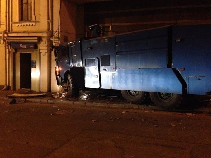 Активисты захватили милицейский водомет, еще один врезался в здание