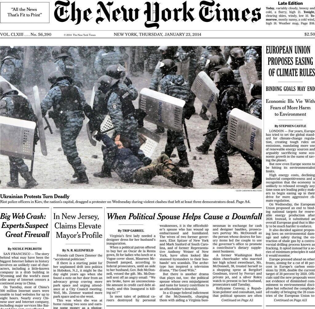 16.22 Авторитетная американская газета The New York Times опубликовала статью о кровавых украинских протестах.