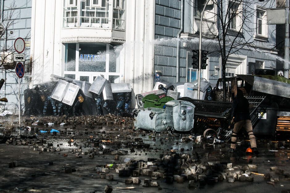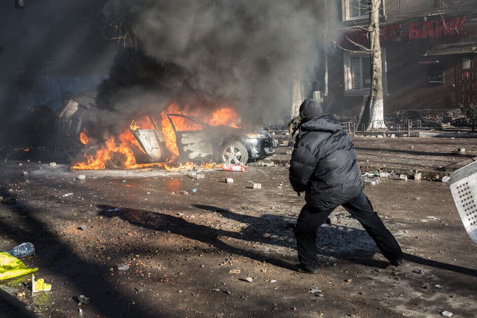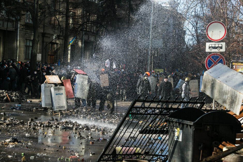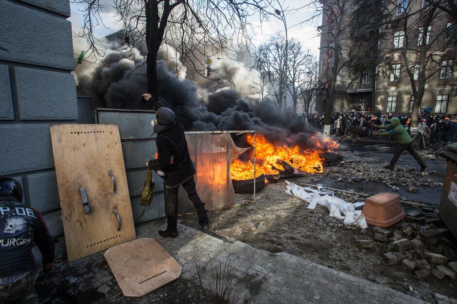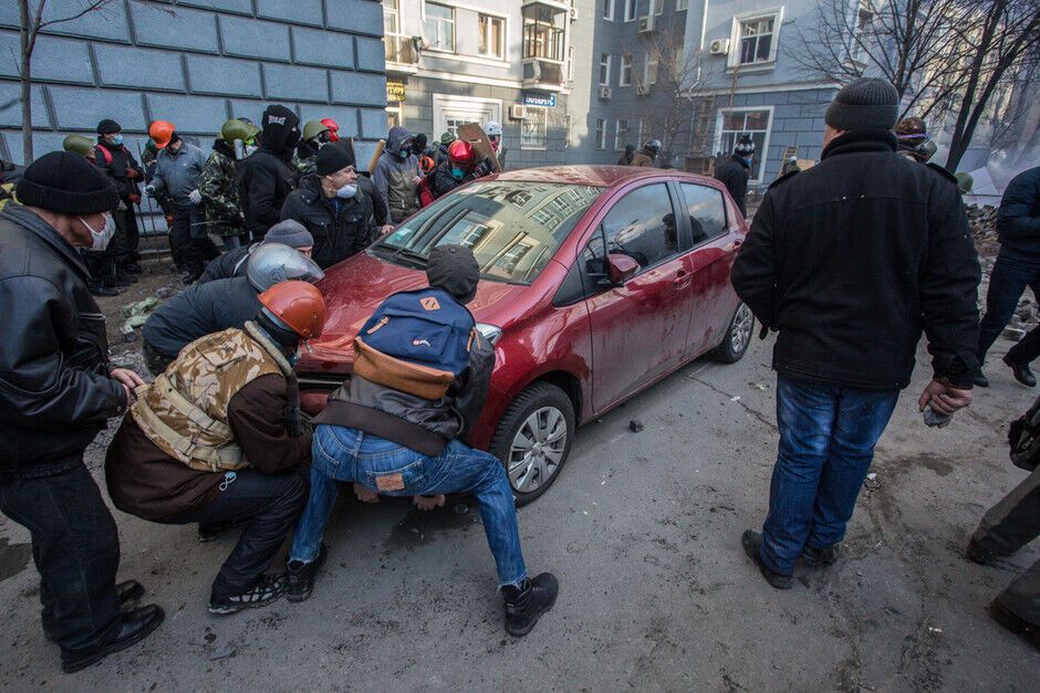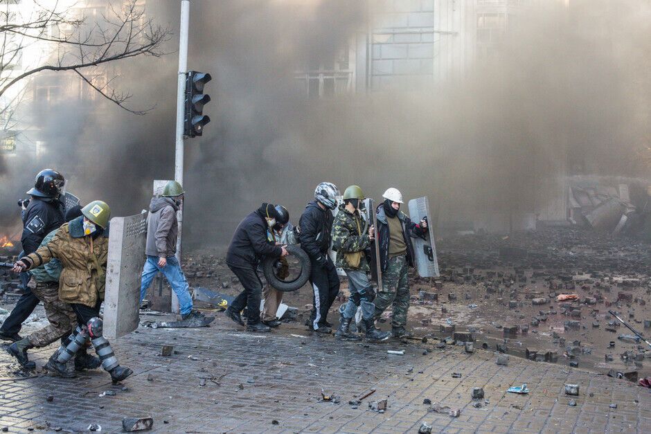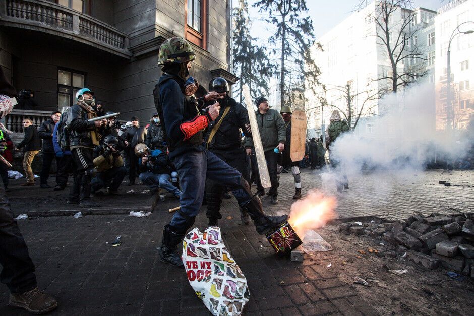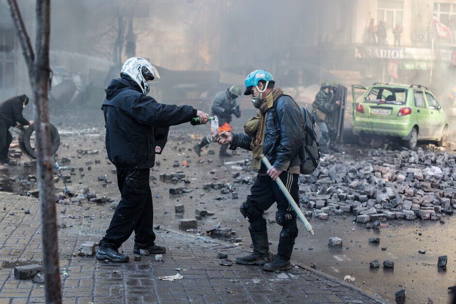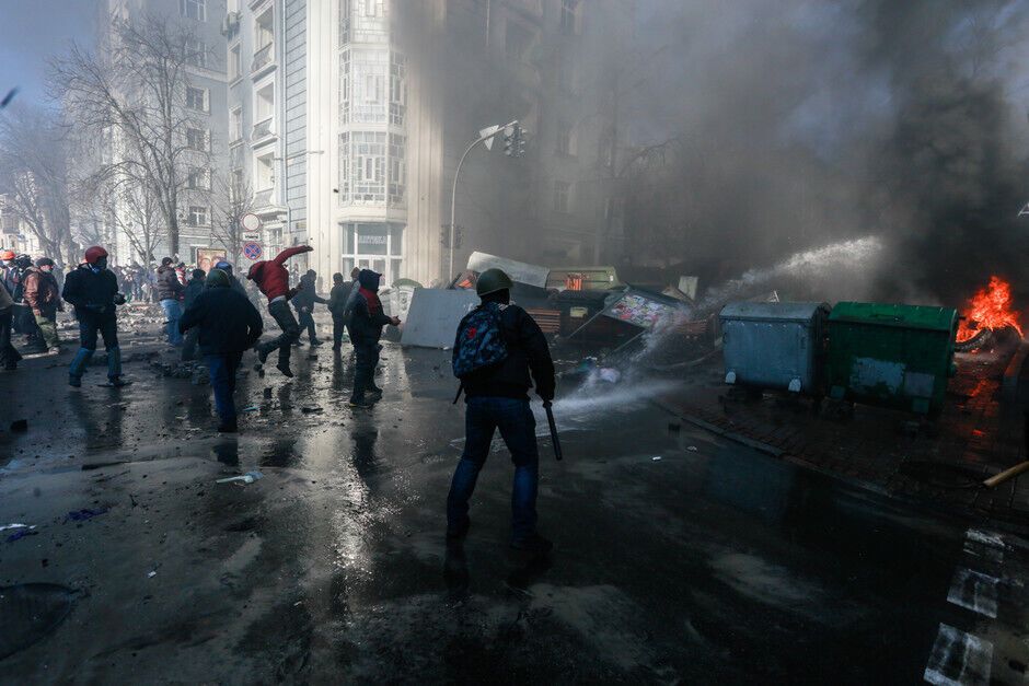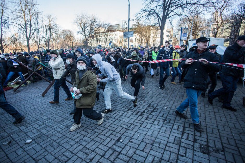 18 февраля в правительственном квартале прошли ожесточенные стычки между евромайдановцами и представителями силовых структур. Силовики использовали свето-шумовые и газовые гранаты, а также помповое оружие. Митингующие в ответ забрасывавали правоохранителей камнями. Медики Евромайдана помогали пострадавшим с обеих сторон.