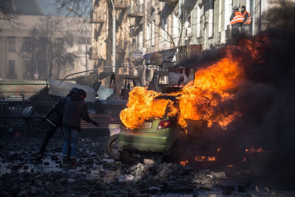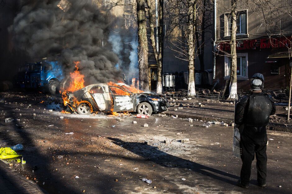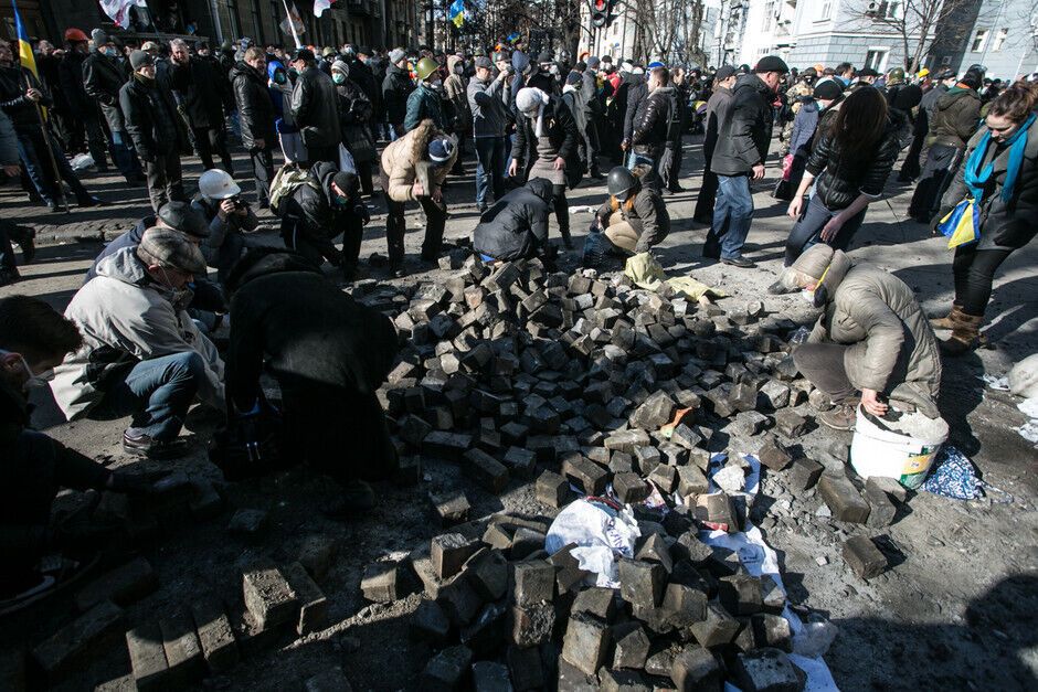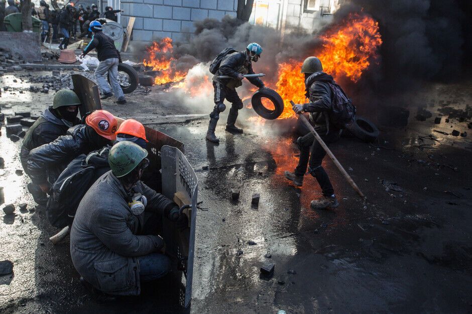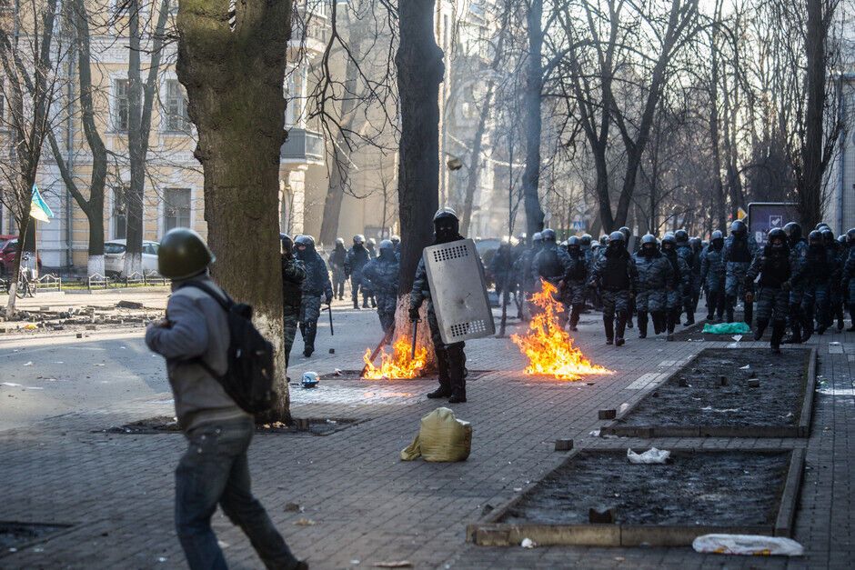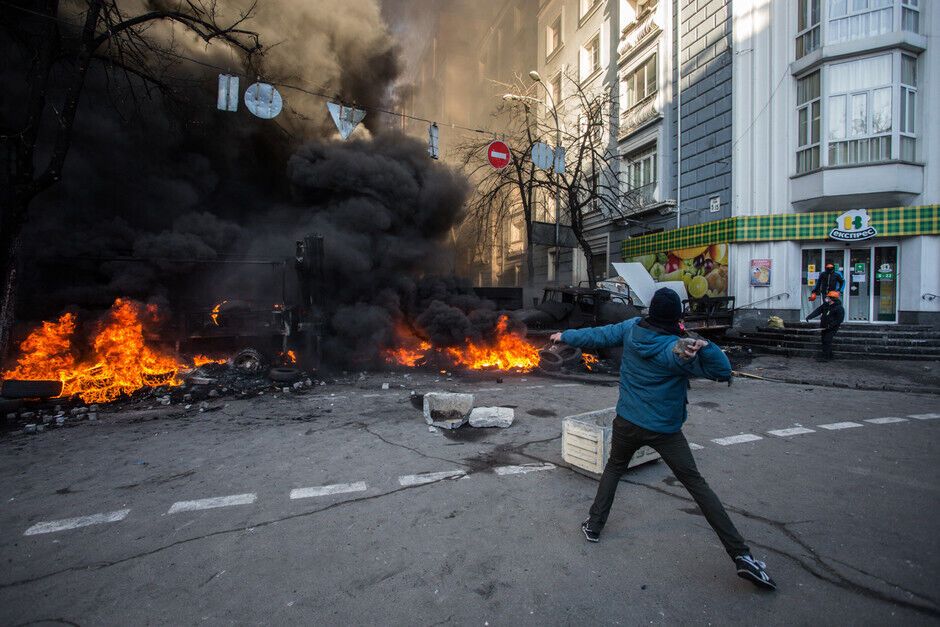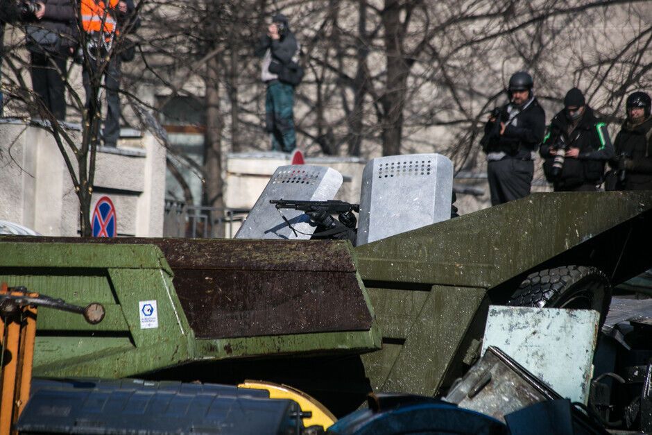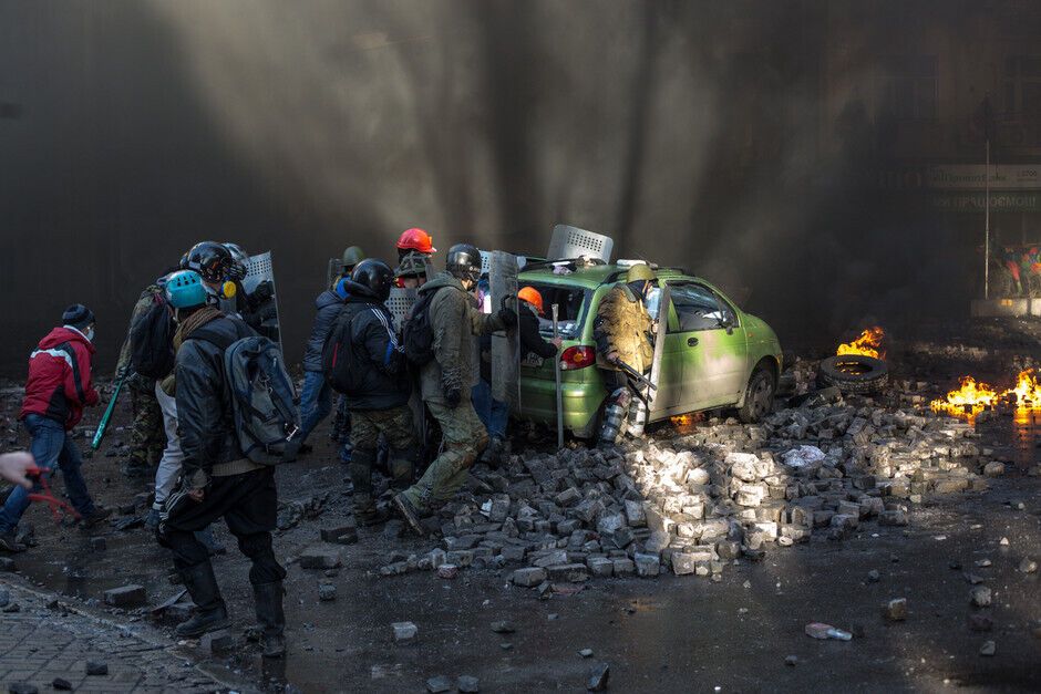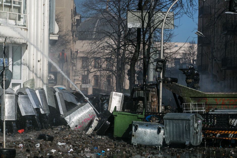 18 февраля в правительственном квартале прошли ожесточенные стычки между евромайдановцами и представителями силовых структур. Силовики использовали свето-шумовые и газовые гранаты, а также помповое оружие. Митингующие в ответ забрасывавали правоохранителей камнями. Медики Евромайдана помогали пострадавшим с обеих сторон.