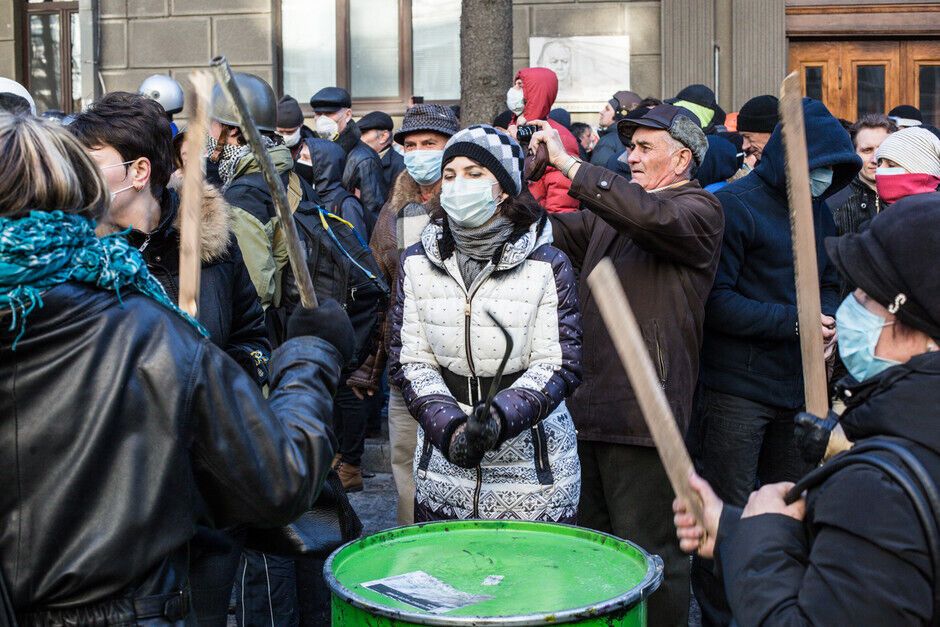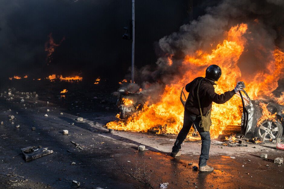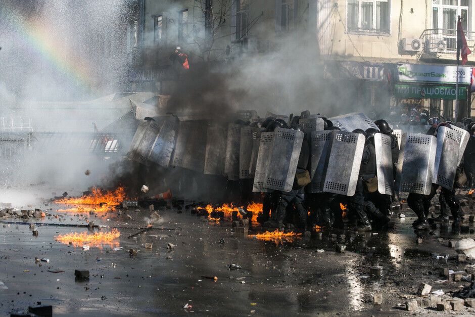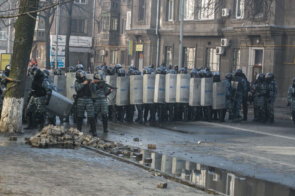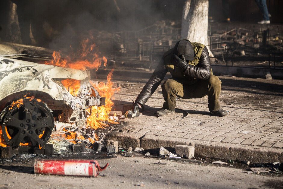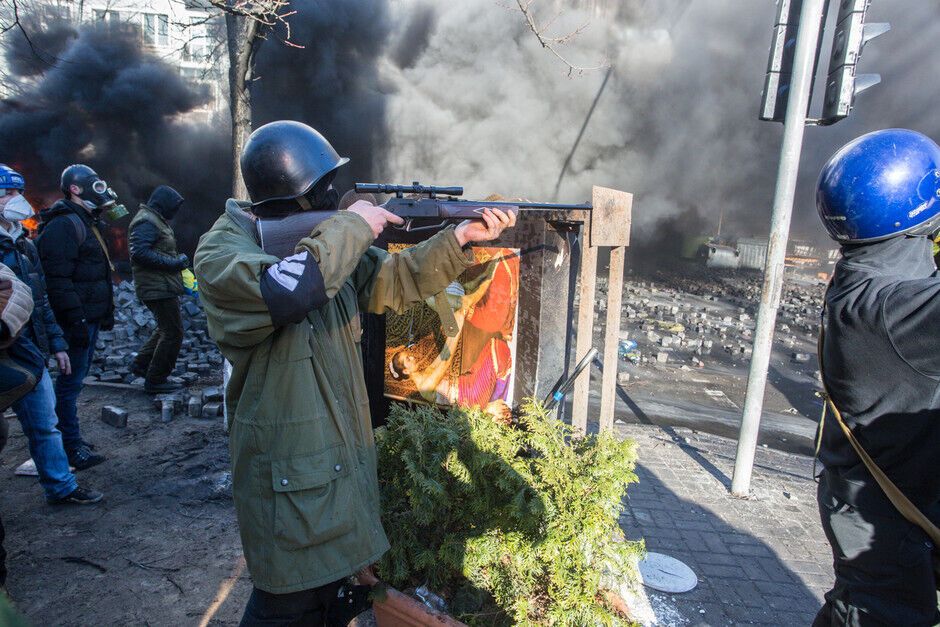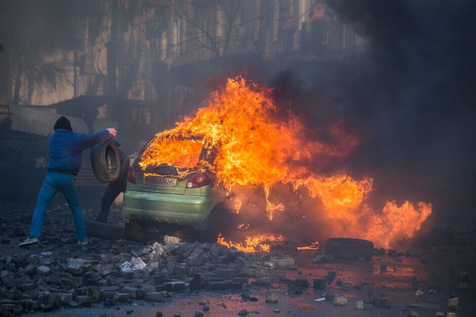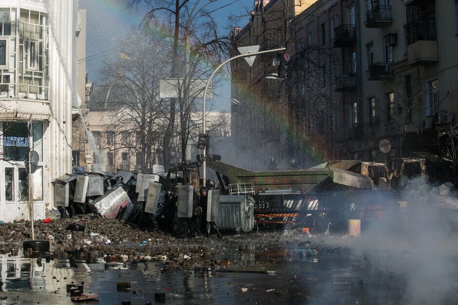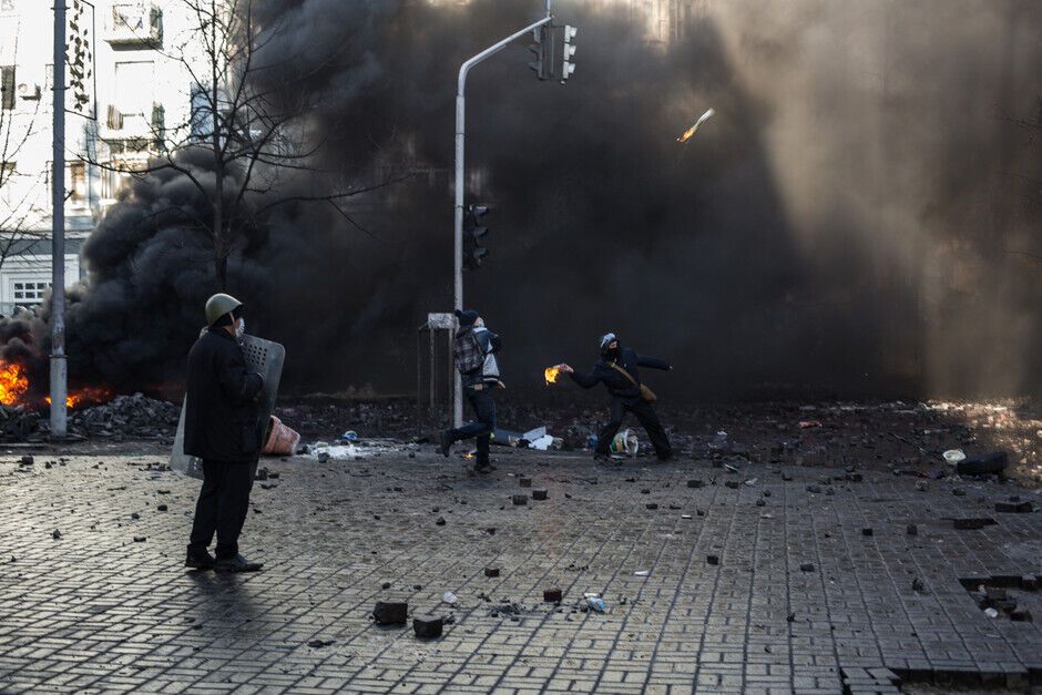 18 февраля в правительственном квартале прошли ожесточенные стычки между евромайдановцами и представителями силовых структур. Силовики использовали свето-шумовые и газовые гранаты, а также помповое оружие. Митингующие в ответ забрасывавали правоохранителей камнями. Медики Евромайдана помогали пострадавшим с обеих сторон.