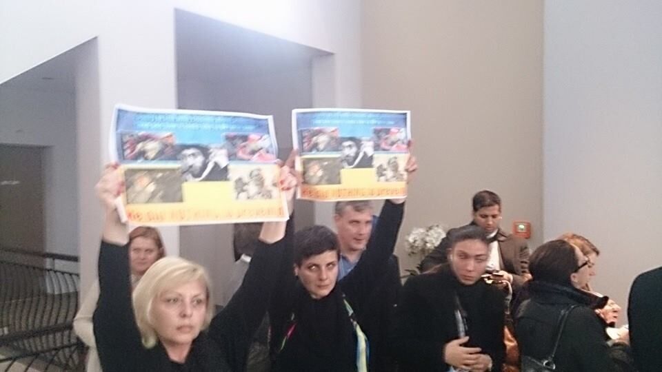 Во время мероприятия, устроенного Пинчуком, они развернули плакаты с фотографиями жертв произвола силовиков в Киеве с текстом: "Вы хотите поговорить с Пинчуком о филантропии? Он ничего не сделал, чтобы защитить этих людей".