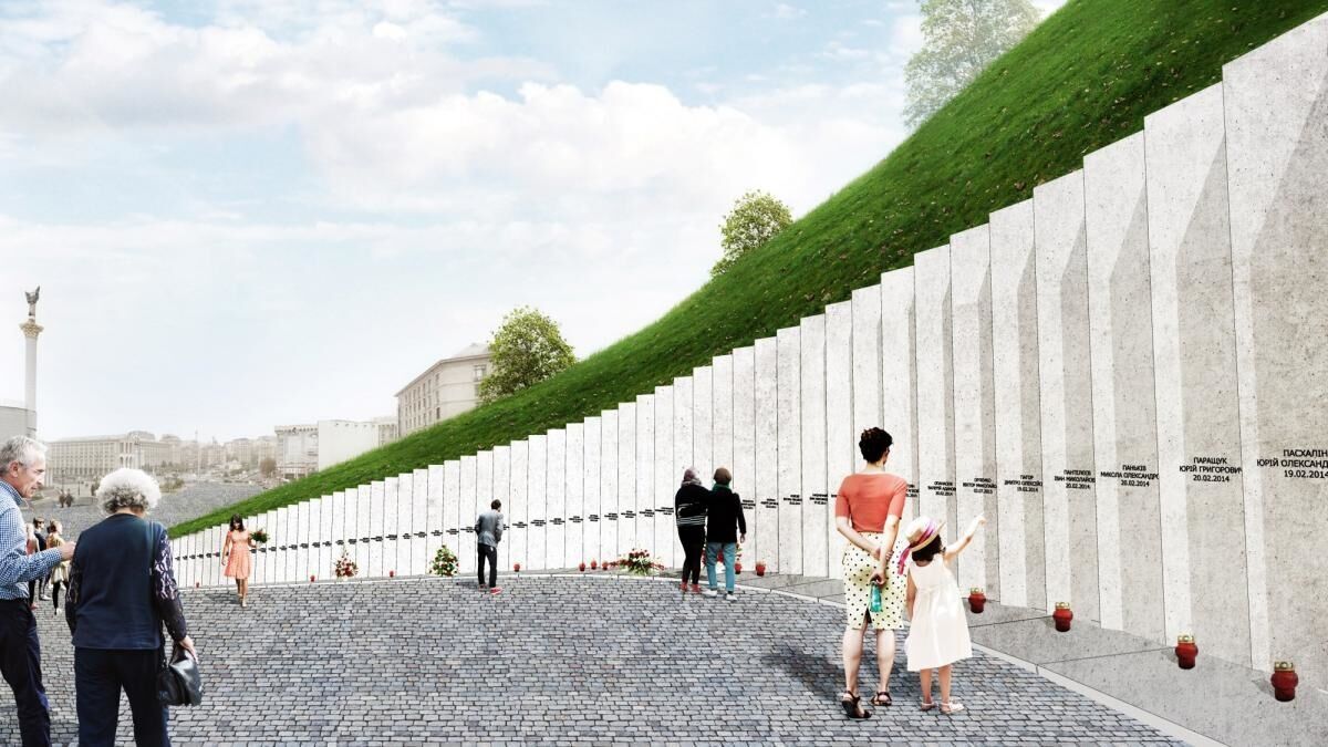 По замыслу авторов центральное место мемориального комплекса займет стела героев. На таблицах стелы будут написаны имена погибших участников Революции достоинства. Вдоль аллеи высадят 107 лип (по количеству погибших).