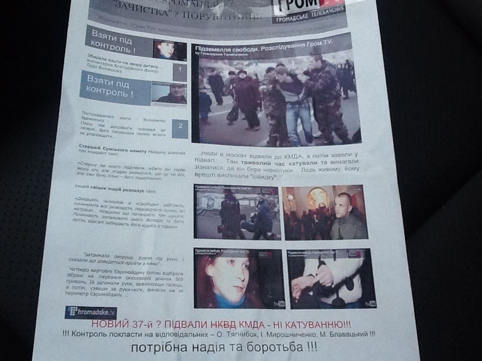 Ранее телеканалы "ГромTV" и "112" сняли сюжет о том, что охрана Евромайдана в подвале КГГА пытает людей, и к этому причастен Мирошниченко.