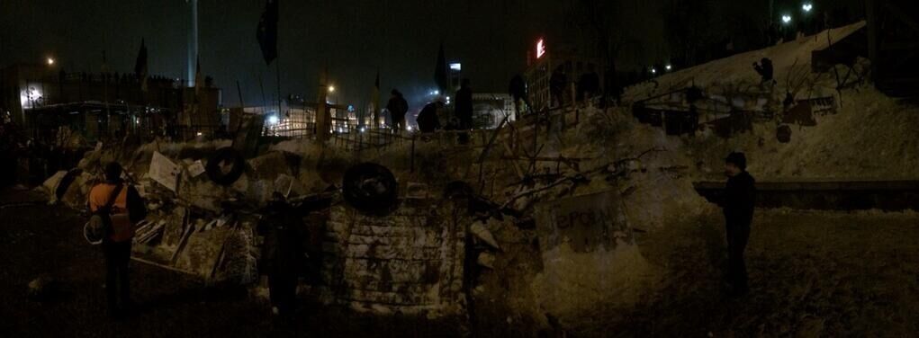 21.17 Вокруг площади новые баррикады, гораздо основательней прежних. В ход пошло все: снег, лед, мешки с песком, арматура, металлические щиты и колючая проволока. Высота заграждений – от одного до четырех метров.