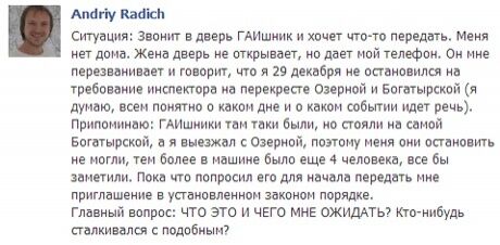 Участники Автомайдана пишут, что сотрудники ГАИ посещают людей дома, расспрашивают о владельцах авто и приглашают на "беседы".