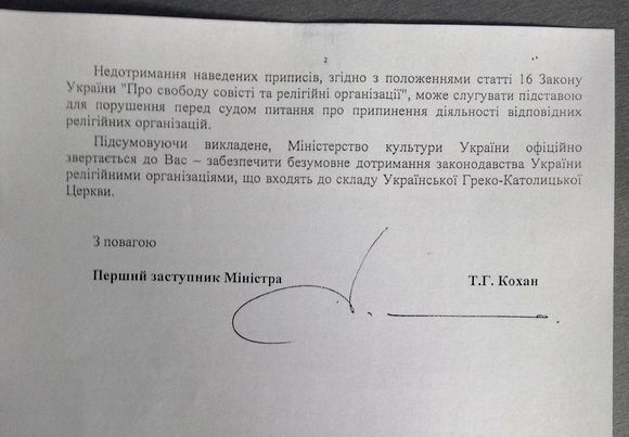 Об этом он заявил на встрече с прессой, поводом для которой стало недавно полученное УГКЦ письмо, подписанное заместителем министра культуры Украины, сообщает "Радіо Свобода".