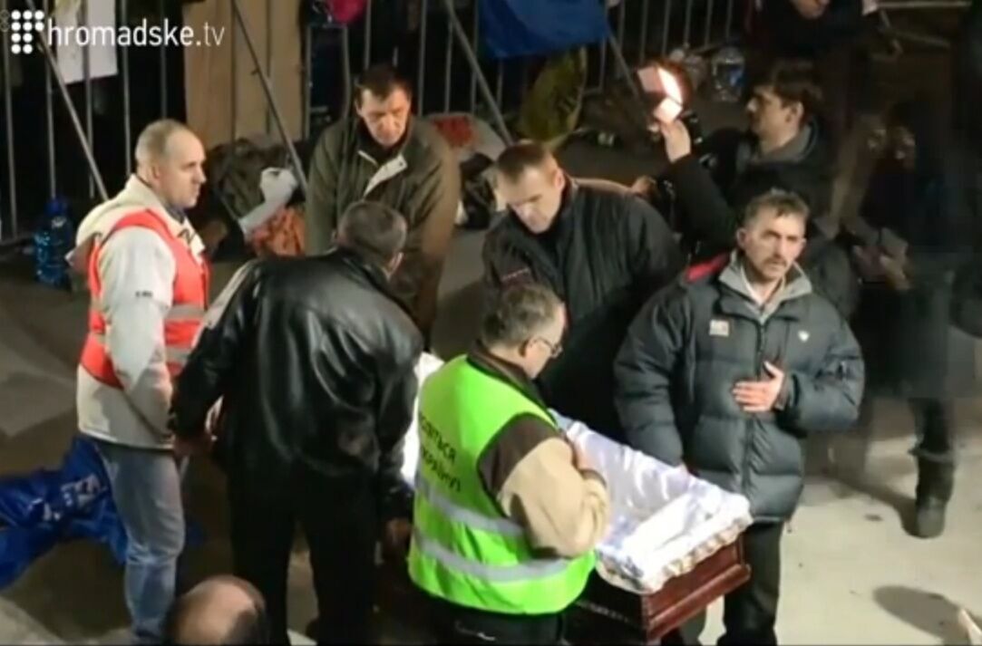 Сегодня весь вечер Майдан прощается с расстрелянными вчера из снайперских винтовок активистами. Гроб за гроб приносят к сцене, заполненный до отказа Майдан Незалежности хором читает молитвы.