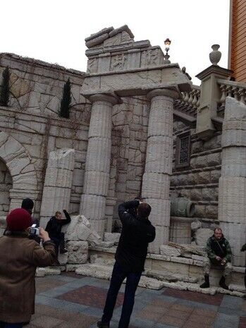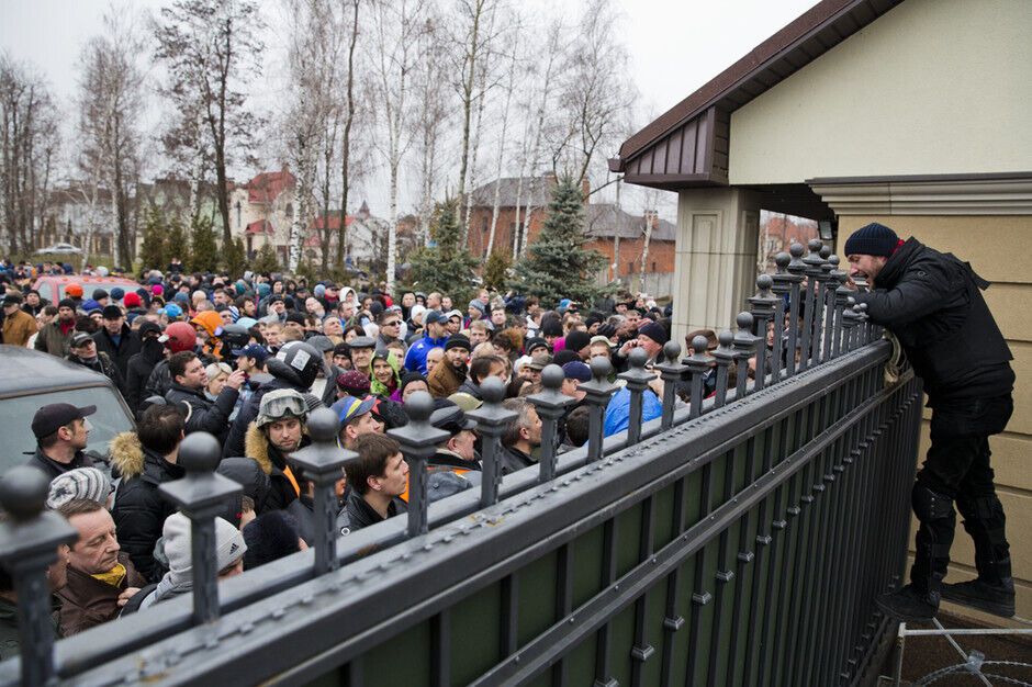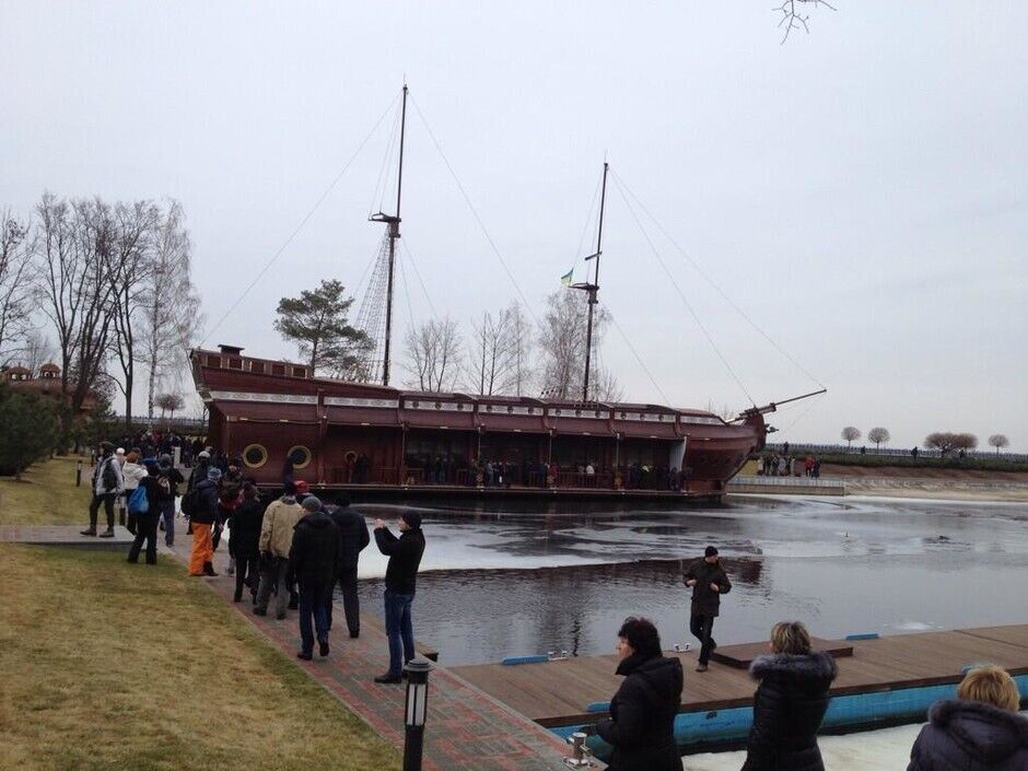 "Сегодня в Киеве люди пришли смотреть на резиденцию бежавшего президента Януковича. К 12-ти часам около КПП стало собираться много людей, все хотели попасть внутрь и посмотреть, как жил президент. В основном это были жители окрестных домов. Самооборона Майдана выставила своих людей по периметру зданий, чтобы не допустить мародерства. Кто-то хотел сломать забор, но попытки предотвращали. Вскоре к резиденции выстроилась пробка из желающих посмотреть на легендарные "золотые унитазы Януковича". В народе в шутку начали называть резиденцию в "Межигорье" Музеем коррупции", – написал Варламов.