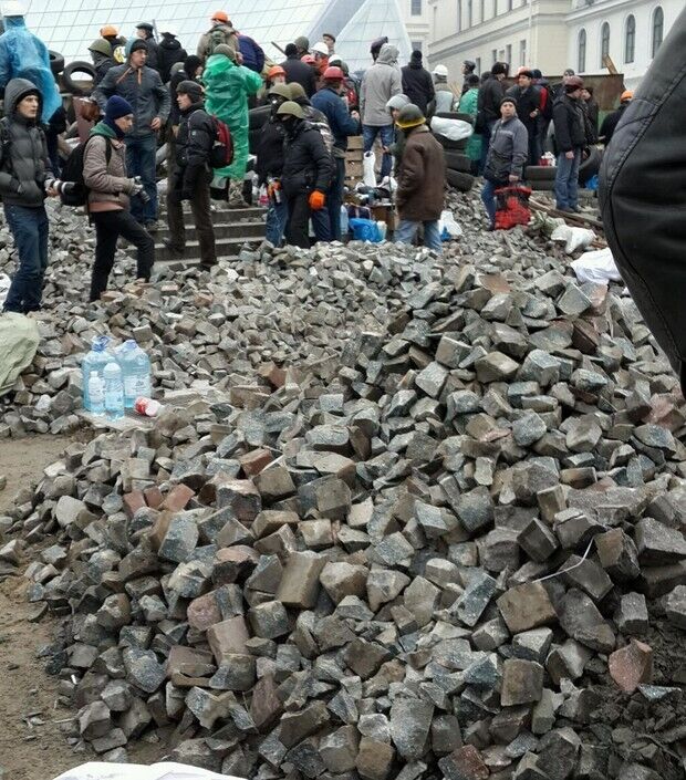 На Майдане активисты разобрали почти всю брусчатку. Фоторепортаж