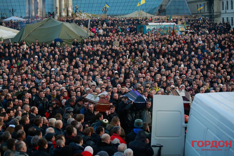 Сегодня на центральной площади Киева прошла траурная церемония прощания с погибшими во время столкновений в Киеве.