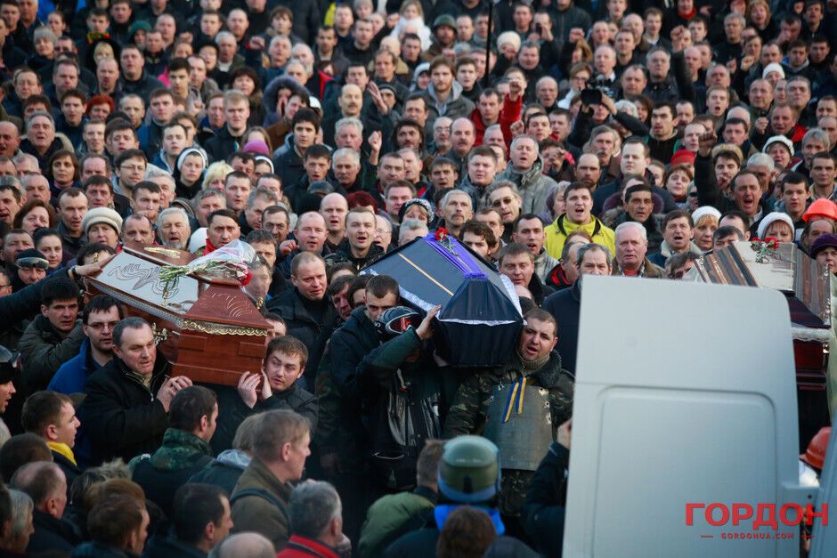 В церемонии прощания с павшими участниками Евромайдана во время столкновений с силовиками приняли участие родные погибших.