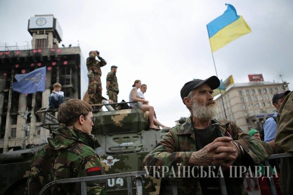 Также на Евромайдан приехали бойцы батальона "Донбасс" с целью поиска добровольцев, желающих отправиться на восток Украины.