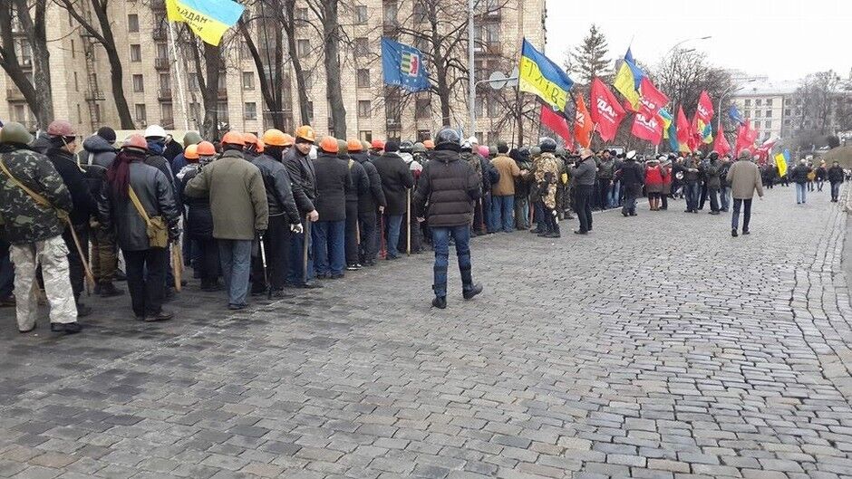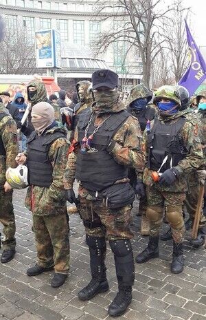 В колоне члены самообороны Майдана и бойцы "Правого сектора".
