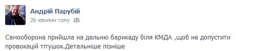 Об этом на своей странице в Facebook сообщил комендант палаточного городка Евромайдана Андрей Парубий.