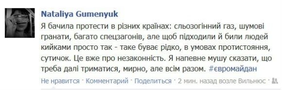 Пользователи Facebook активно отреагировали на утренний разгон мирной акции протеста на Майдане Незалежности.
