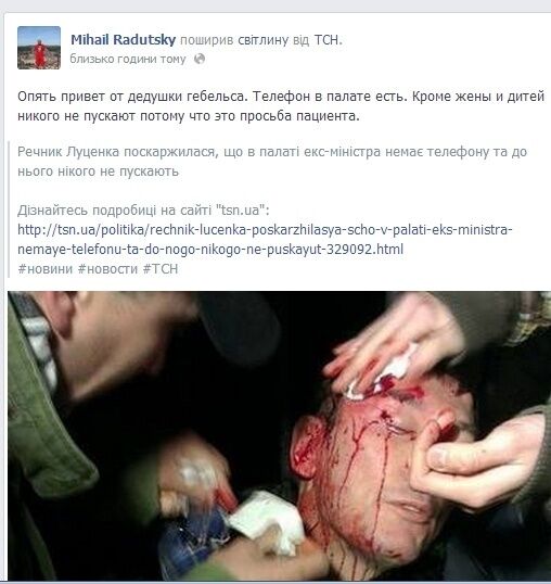 Об этом на своей странице в Facebook написал президент клиники "Борис" Михаил Радуцкий, комментируя появившуюся ранее информацию о том, что к экс-министру никого не пускают, а в его палате нет телефона.