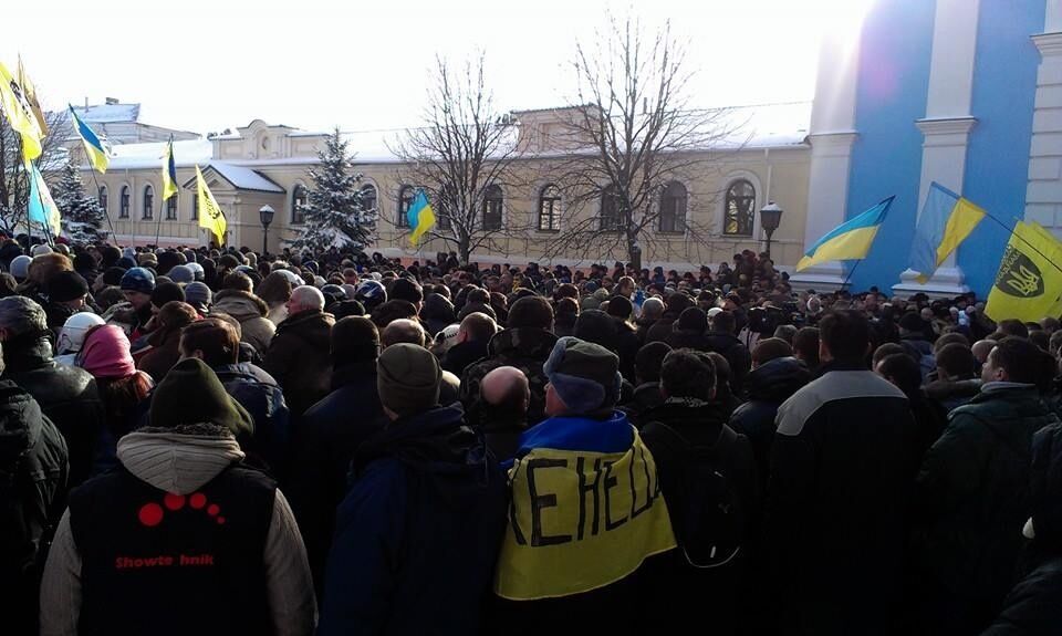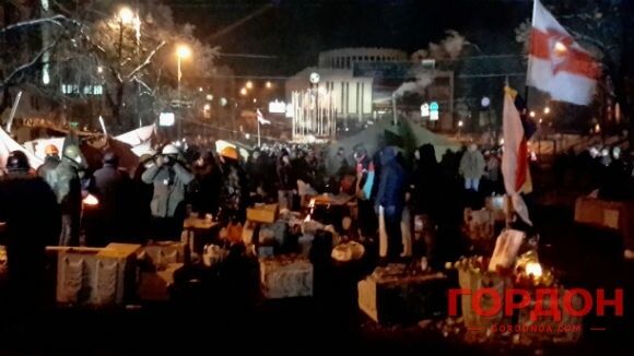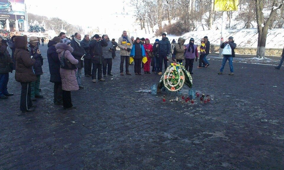 12.50 Впереди панихиды по Михаилу Жизневскому идет сотня самообороны Майдана для обеспечения безопасности. Люди продолжают прибывать на Майдан Незалежности, больше всего – с южного выхода метро "Крещатик", где даже образовалась "пробка" из людей.