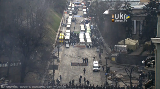 Охрану правительственного квартала и территорию вокруг Верховной Рады усилили дополнительным количеством силовиков. "Беркут" сидит в автобусах, с которых сняли номерные знаки. Рядом, в Мариинском парке, проходит митинг сторонников власти.