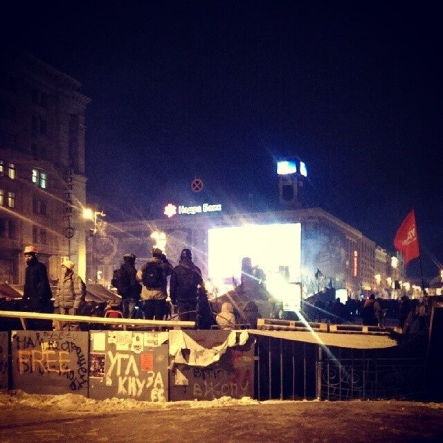 03.12 В КГГА выключили свет. Баррикада на Институтской у Октябрьского дворца все еще держится.