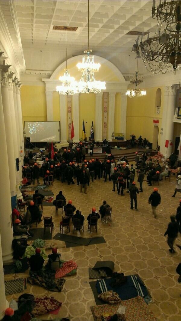 03.18 В КГГА вновь включили свет. Активисты внутри следят за событиями на Майдане Незалежности.