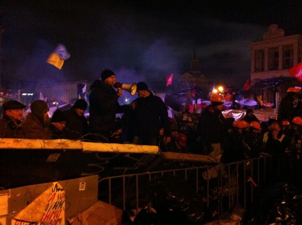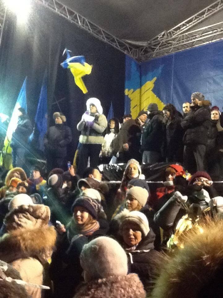 01.43 На сцене Евромайдана призывают всех жителей Киева выйти на улицы и сдержать разгон протеста.