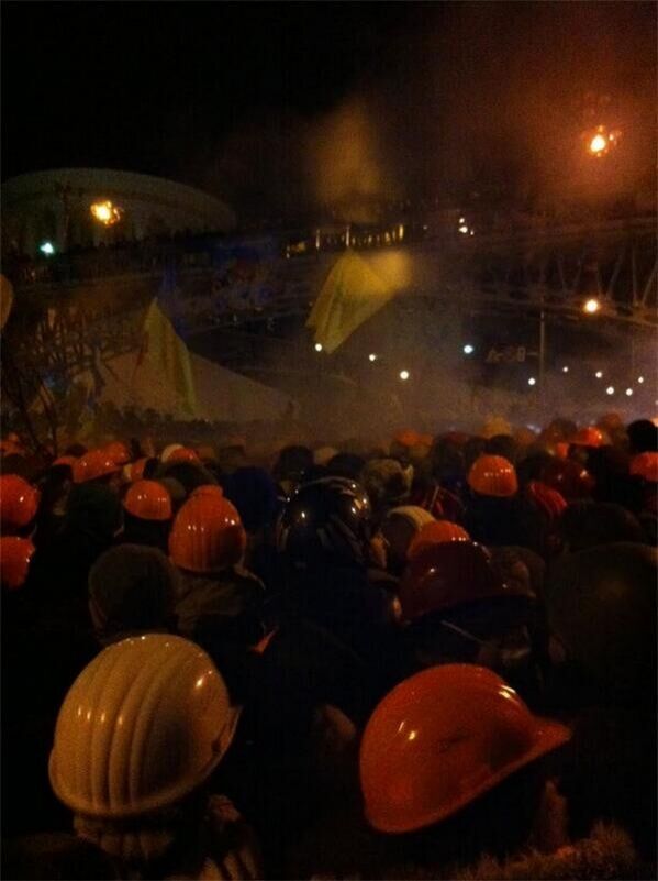 04.01 Активисты оттеснили беркутовцем метров на 200 верх по Институтской, силовики используют слезоточивый газ, передает Мустафа Найем.