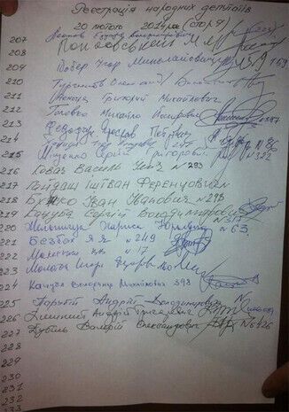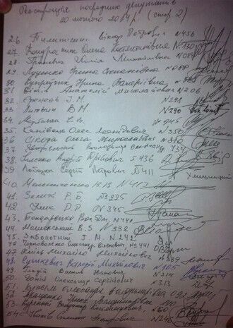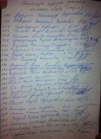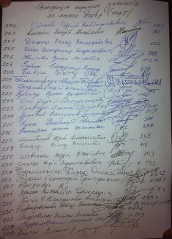 Списки 227 депутатов на сессии Верховной Рады