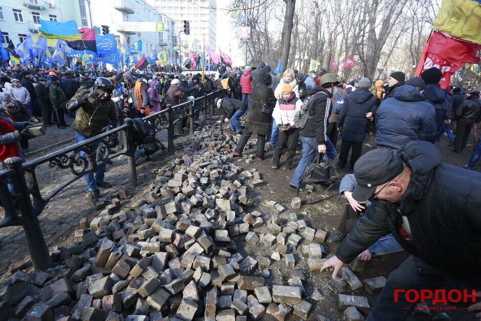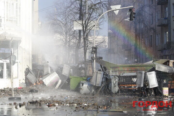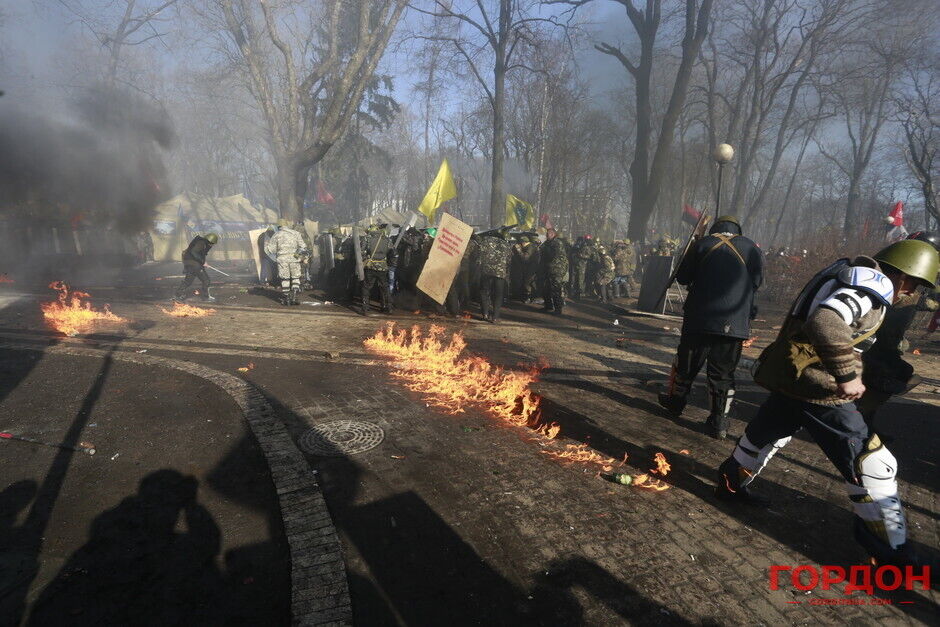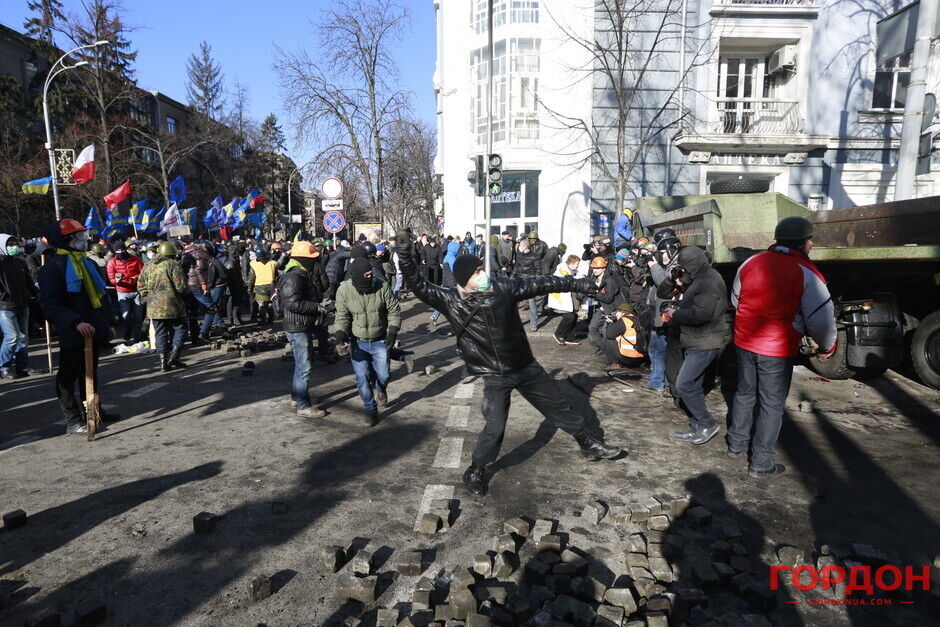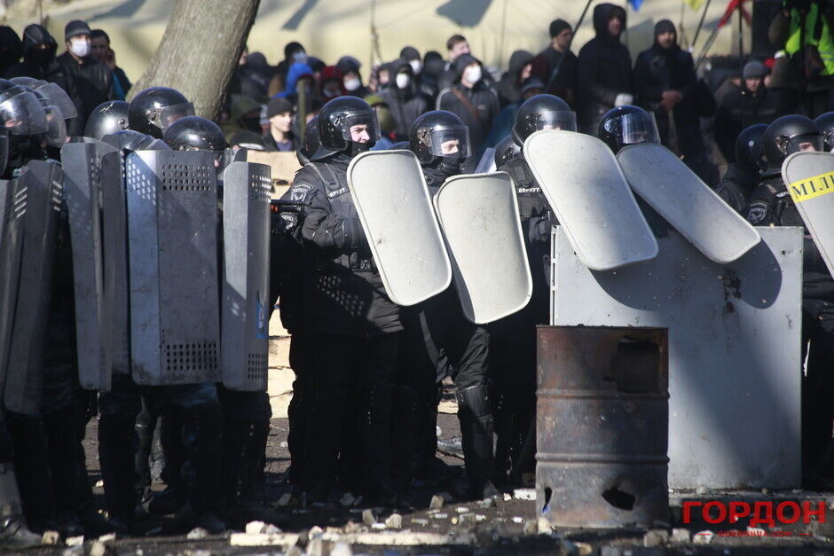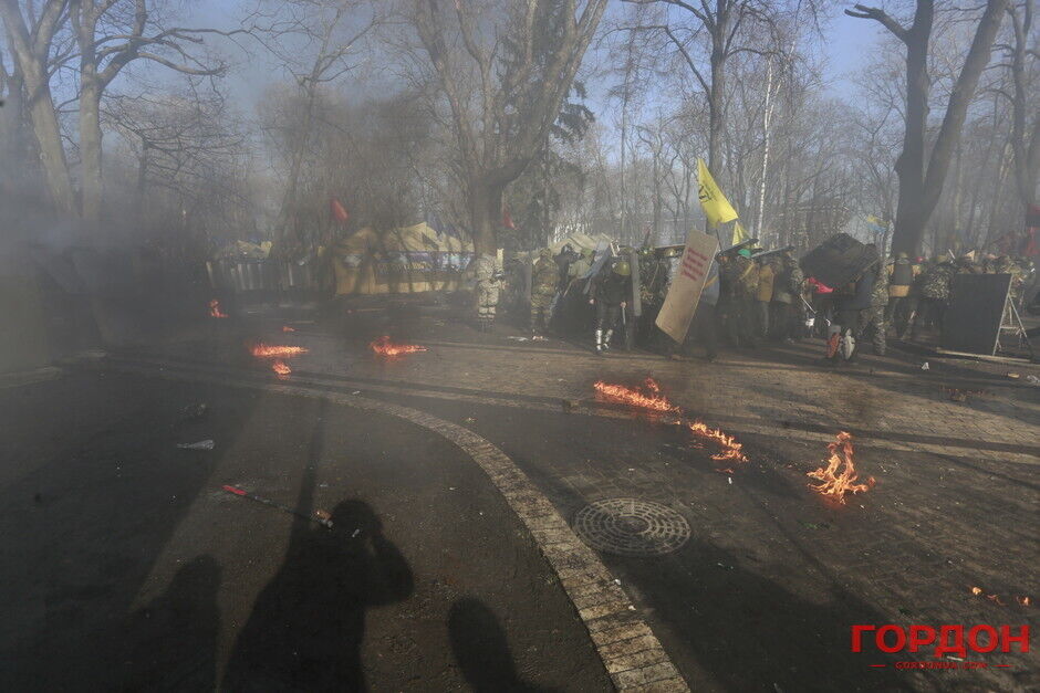 Во вторник утром в правительственном квартале в Киеве началось силовое противостояние между митингующими, которые хотели пройти к Верховной Рады, и силовиками. Самые ожесточенные столкновения происходят в Мариинском парке и на углу Шелковичной и Институтской. Силовики используют свето-шумовые и газовые гранаты, а также помповое оружие. Митингующие в ответ забрасывают их камнями.