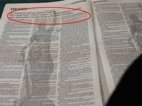 Тиражи изданий сейчас находятся в киевской типографии. Согласно закону Украины, новые нормы вступят в силу со дня следующего за днем опубликования, то есть 22 января 2014 года в полночь. В частности, закон об упрощении процедуры лишения депутатской неприкосновенности и заочном судебном производстве.