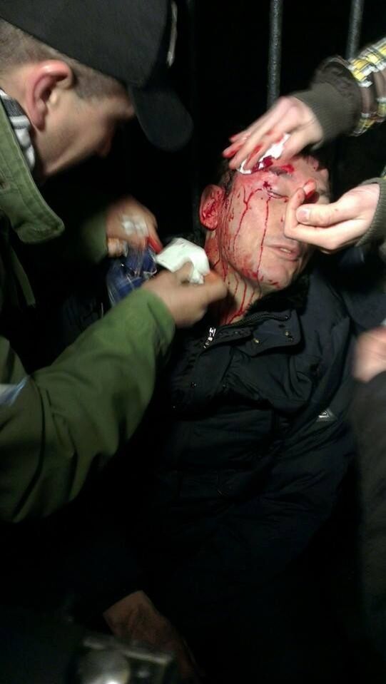 Во время столкновений экс-министру внутренних дел Юрию Луценко разбили голову. Волонтеры-медики, которые пришли с Евромайдана, предоставили ему первую помощь. Позже его госпитализировали. Очевидцы говорят, что Луценко получил серьезные травмы, к машине "скорой" его вели под руки.