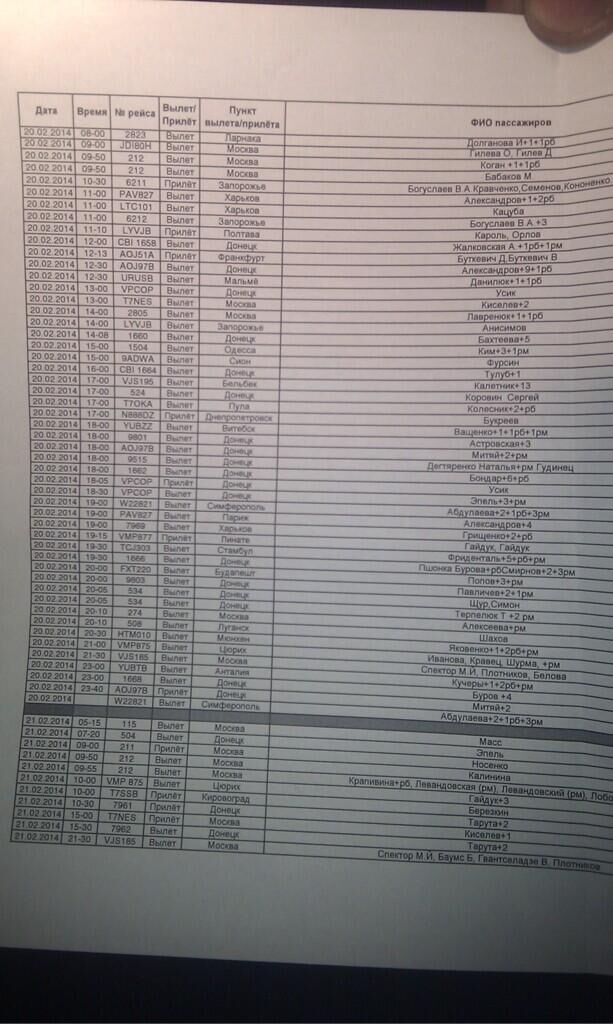 Перечень фамилий улетевших в четверг вечером на чартерных рейсах из аэропорта "Киев" (Жуляны") опубликовали в Twitter.