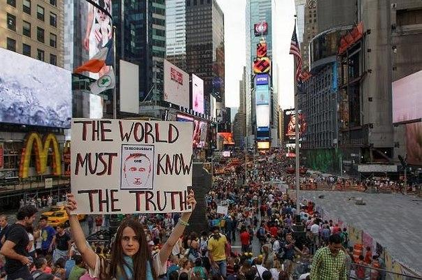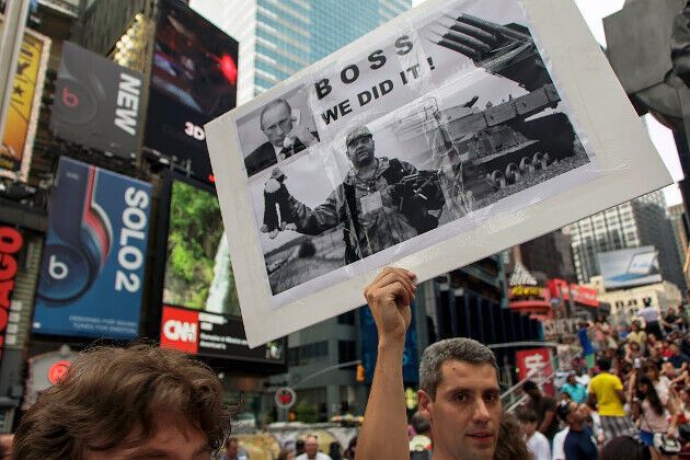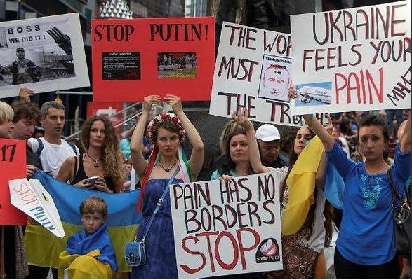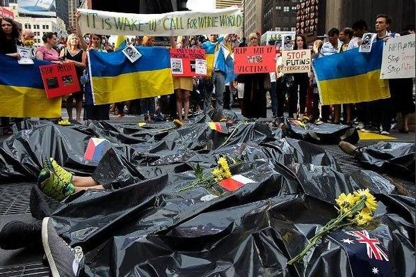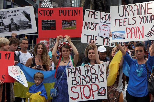 Жители Нью-Йорка – украинцы, белорусы, грузины, американцы и представители других национальных общин – провели акцию в память погибших пассажиров рейса МН17 авиалайнера Boeing 777 "Малайзийских авиалиний". По словам координатора организации "Українці за кордоном" Валентины Бардаковой, Таймс-сквер был выбран не случайно. "Это сегодня модель нашего мира. Оглянувшись вокруг, вы можете видеть туристов из десятков стран, это следствие глобализации. Проблемы одной страны или региона неизбежно затрагивают весь мир, который не может их игнорировать. То, что происходит в Украине, – это не внутренний конфликт и даже не региональный. Это проблема всей планеты", – сказала Бардакова.
