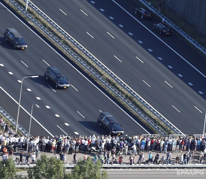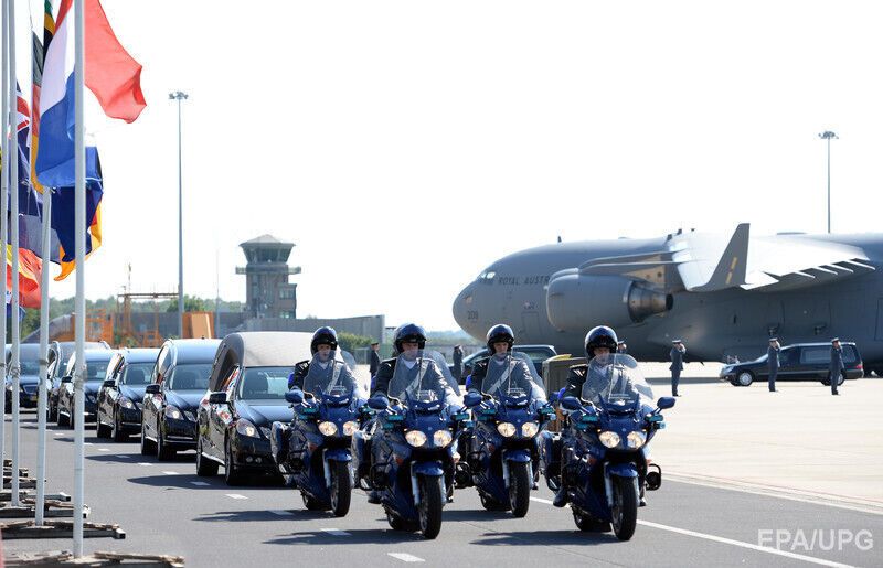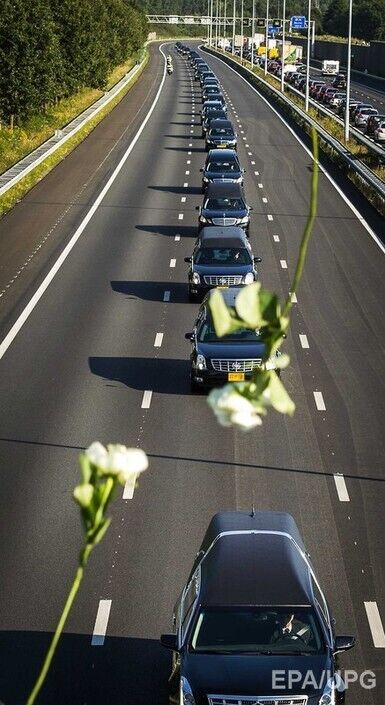 В аэропорту "Эйндховен" в Нидерландах состоялась церемония прибытия первых тел погибших в катастрофе самолета Boeing 777. Церемония транслировалась в прямом эфире. В ней приняли участие представители всех стран, граждане которых погибли в этой катастрофе. Колонну церемониальных автомобилей сопровождал эскорт военной полиции. Практически по всему пути следования колонны на обочинах дорог и мостах стояли тысячи скорбящих нидерландцев в белых одеждах.
