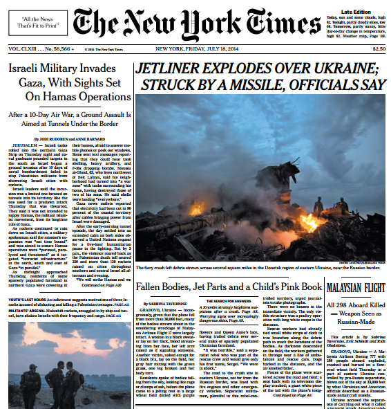 Ведущие мировые издания посвятили свои первые полосы авиакатастрофе под Донецком. Фоторепортаж