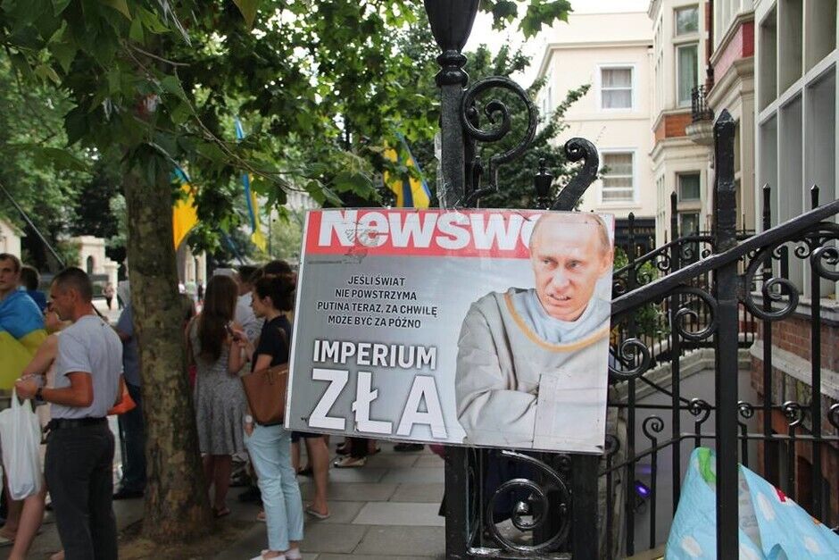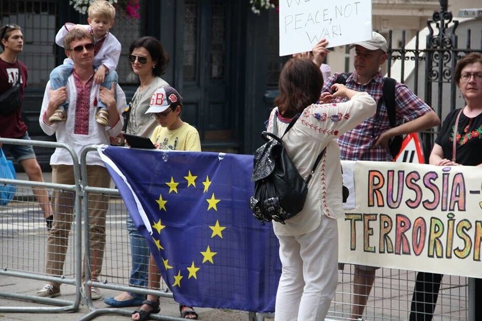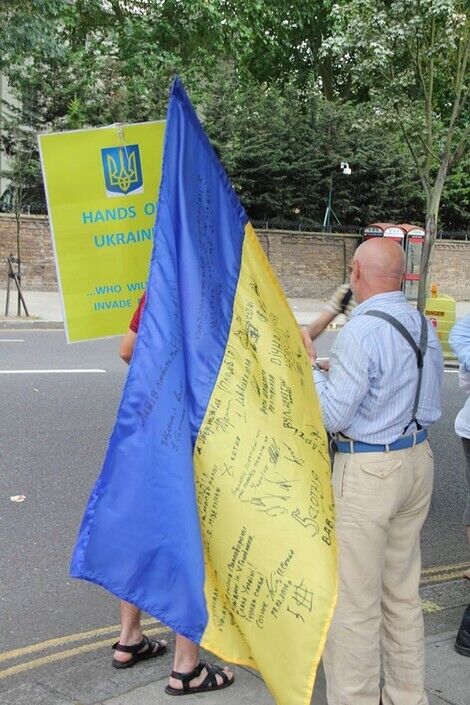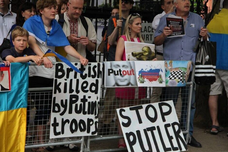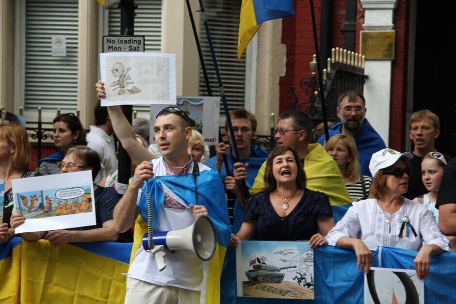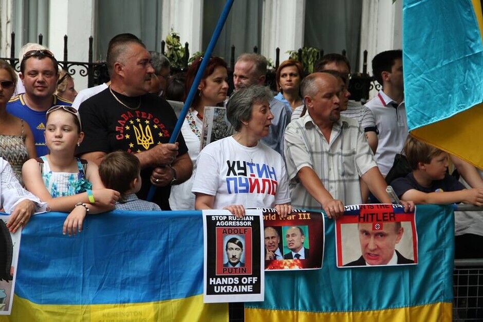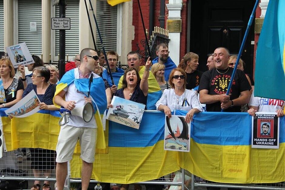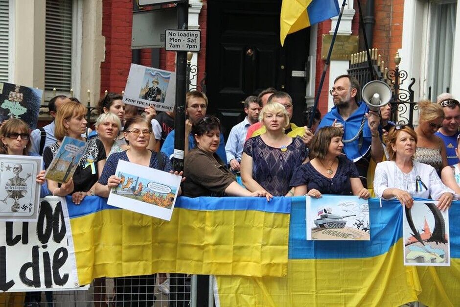В воскресенье, 20 июля, под посольством России в Лондоне украинцы вместе с британцами и представителями других национальностей провели акцию протеста против президента РФ Владимира Путина и вооруженных пророссийских боевиков на востоке Украины. Митингующие требовали введения новых санкций против Кремля.