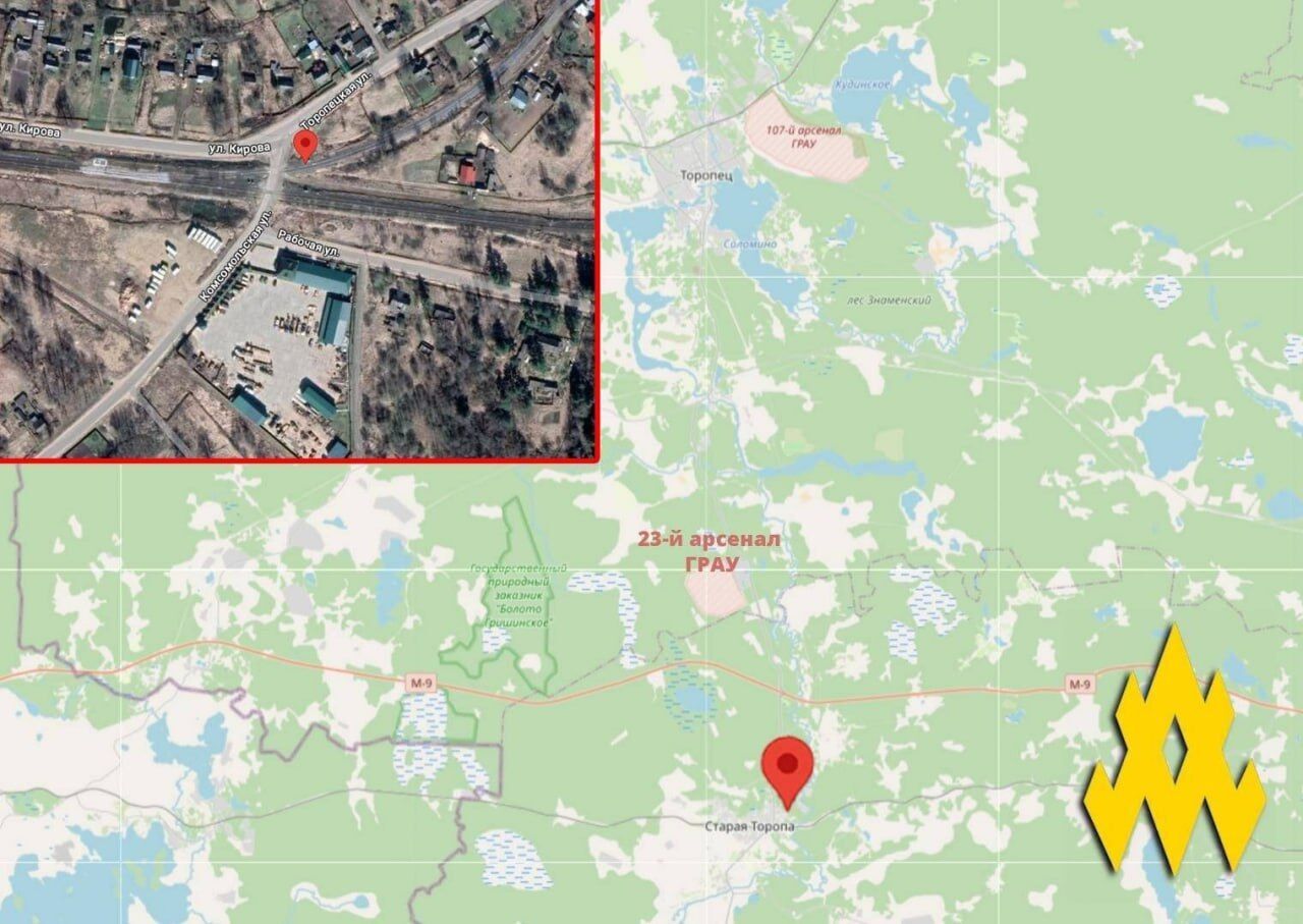 По данным агентов, 23-й арсенал ГРАУ, находящийся в 16 км к югу от Торопца, хранит значительные запасы танковых и артиллерийских снарядов, осколочно-фугасных мин и боеприпасов для минометов, а также противотанковых ракет и управляемых снарядов.