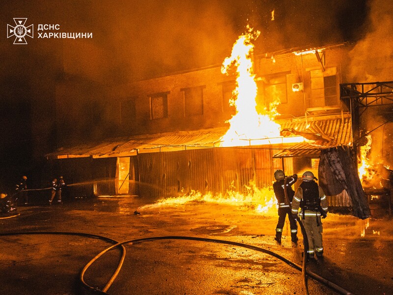Государственная служба по чрезвычайным ситуациям показала в Telegram видео и фото с мест ночного обстрела Харькова.