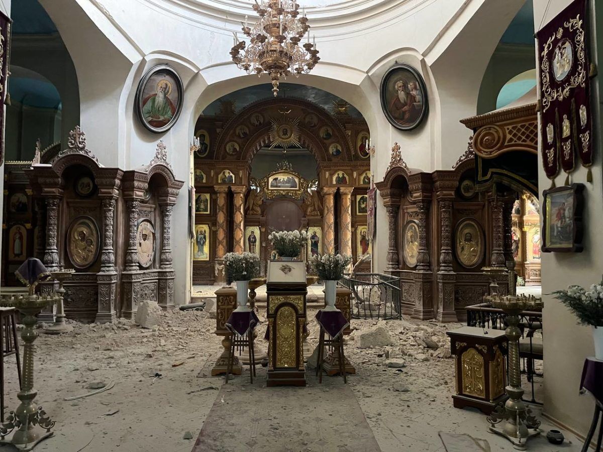 "В результате этого значительные повреждения получил фасад и интерьер храмового здания. Внутри храм завален обломками и покрыт пылью", – говорится в сообщении.