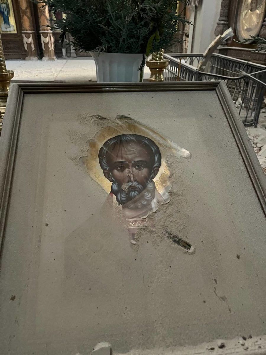 Отмечается, что снаряд попал в световой барабан храма – часть здания под куполом.